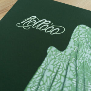 “Hellooo” art print with a sheet ghost peeking around the corner, waving. Features a gorgeous, velvety-green background. 8″x10″ print on premium matte paper.