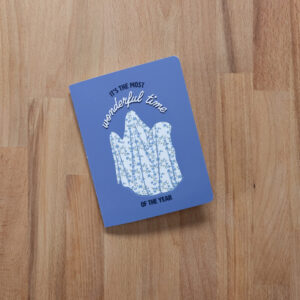 “It’s the Most Wonderful Time of the Year” greeting card with a joyful sheet ghost. A2-sized card, kraft envelope included. Blank inside to write whatever you’d like!